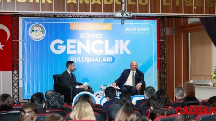 Körfez Belediye Başkanı Şener Söğüt, Atatürk Anadolu Lisesi'nde 'Gençlik Buluşmaları' etkinliği kapsamında öğrencilerle bir araya geldi. Okul konferans salonunda gerçekleştirilen buluşmada öğrencilerin de sorularını yanıtlayan Başkan Şener Söğüt, 40 yıldır Körfez'de yaşadığını ve üniversite yılları hariç öğrenim hayatını Körfez'de geçirdiğini belirten Başkan Söğüt, tercih dönemiyle ilgili de anekdotlar paylaştı. Söğüt, 'Bizler özellikle sizlerin enerjisinden istifade ederek, sizlerden ilham alarak projelerimize yön veriyoruz. Sizlerin enerjisi bizler için önemli' dedi.