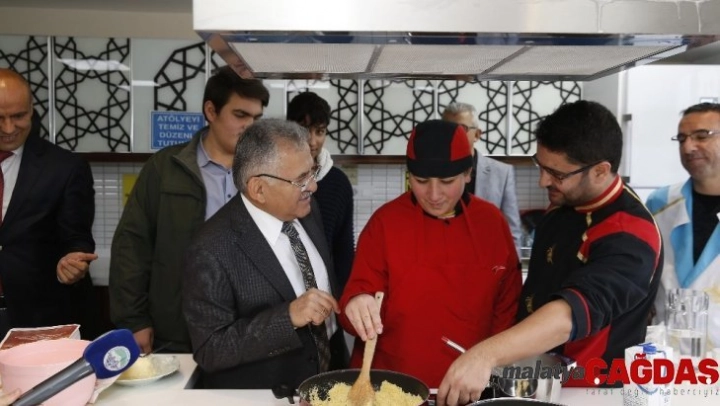 Büyükşehir Belediye Başkanı Dr. Memduh Büyükkılıç, İstiklal Özel Eğitim Meslek Okulu'nda çok sıcak bir şekilde karşılandı. Öğrencilere yakın alaka gösteren Başkan Büyükkılıç, herkesin elini sıktı, hatırını sordu. Okul yöneticileri, öğretmen ve öğrencilerle birlikte okulu gezen Başkan Büyükkılıç, bir ara mutfağa da girerek irmik helvası yapımına bizzat katıldı ve helvayı karıştırdı.