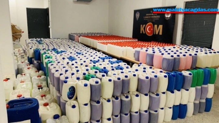 Edinilen bilgilere göre, Ankara İl Emniyet Müdürlüğü Kaçakçılık Suçlarıyla Mücadele Şube Müdürlüğü ekipleri, koronavirüs nedeniyle vatandaşların yoğun ilgi gösterdiği dezenfektan ürünlerinin sahtelerini hazırlayarak piyasaya sürmeye çalışanlara yönelik operasyon düzenledi. Operasyonda 7 ton 960 kilogram sahte temizlik malzemesi ve 1 ton 220 kilogram el dezenfektanına el koyarken, 4 şüpheli gözaltına alındı.