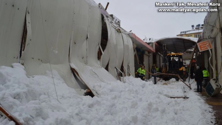 Besni'de yoğun kar yağışı çatıları çökertti