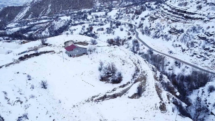 Beyaza bürünen 2 bin rakımdaki mahalleler havadan görüntülendi