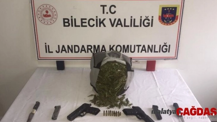 Alınan bilgilere göre; Bilecik İl Jandarma Komutanlığı ekipleri, Bozüyük ilçesine bağlı Kızılcapınar köyü sınırları içerisindeki Karayolları Genel Müdürlüğüne ait şantiye sahasında bulunan şüpheli bir araçta ve aracın civarında arama yaptı. Aramalar sonucu 3 kilo 488 gram kubar esrar, 2 adet tabanca, 17 adet tabanca fişeği, 2 adet ekmek bıçağı ele geçirildi. Olayla ilgili olarak adli makamlara sevk edilen M.K. M.E. ve O.E. isimli şüpheliler tutuklanarak cezaevine gönderildi.