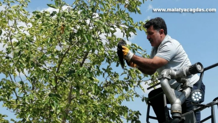 Bingöl'de ayağı ağaç dalına takılı kalan karga kurtarıldı