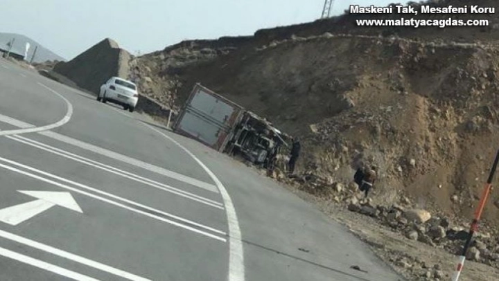 Bingöl'de kamyon devrildi, sürücü hafif yaralandı.