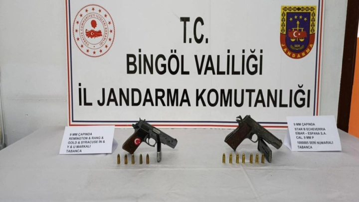 Karlıova ilçesinin Taşlıçay Köyü mülki sınırları içerisinde yürütülen çalışmalar sonucunda, yapılan aramalarda 2 adet tabanca, 2 adet şarjör ve 12 adet fişek ele geçirildi. Operasyon kapsamında 2 şüpheli şahıs gözaltına alındı.