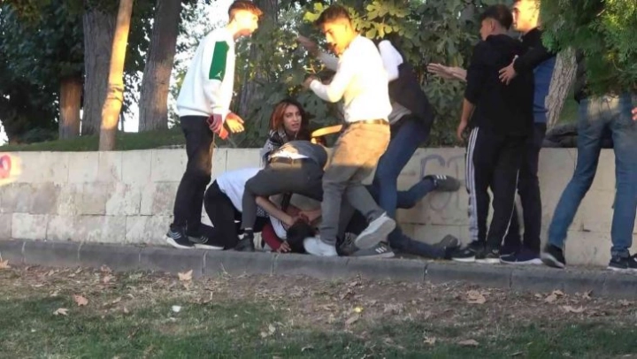 Adıyaman'da, kızlarında içerisinde bulunduğu kavgada tekme ve yumruklar havada uçuştu.