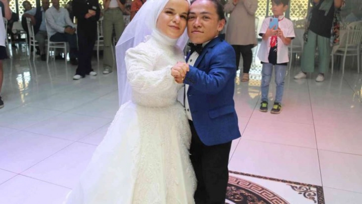 Boyları 1 metre 8 santimetre olan Sivaslı Ahat Öztürk ve Emine Demirel çiftçi sosyal medyadan tanışarak evlenme kararı almıştı. İlk düğün geçtiğimiz günlerde Emine Demirel'in memleketi Gümüşhane'de yapılmıştı. İkinci düğün ise bugün Öztürk'ün memleketi Sivas'ta gerçekleştirildi. Çift tamamlanan düğünlerin ardından dünya evine girdi. Çift, geniş katılımla gerçekleşen düğünde dakikalarca dans etti. Çiftçin mutlulukları yüzlerinden okundu.