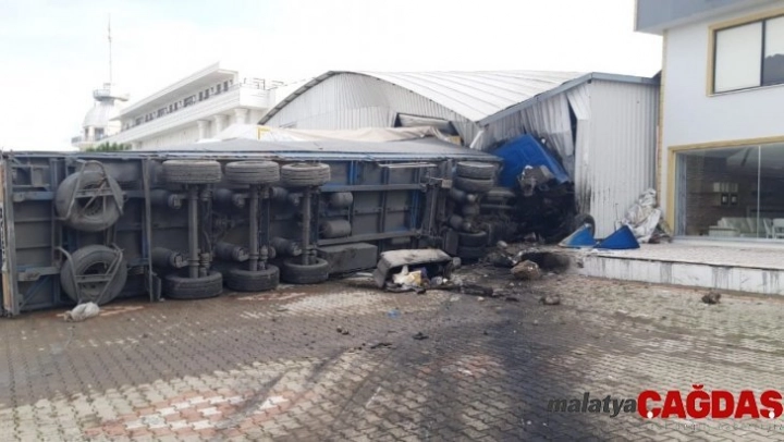 Bursa'nın Mustafakemalpaşa ilçesinde direksiyon hakimiyetini kaybeden tır sürücüsü önce park halindeki kamyona çarptı, sonra mobilya mağazasına çarparak durabildi.