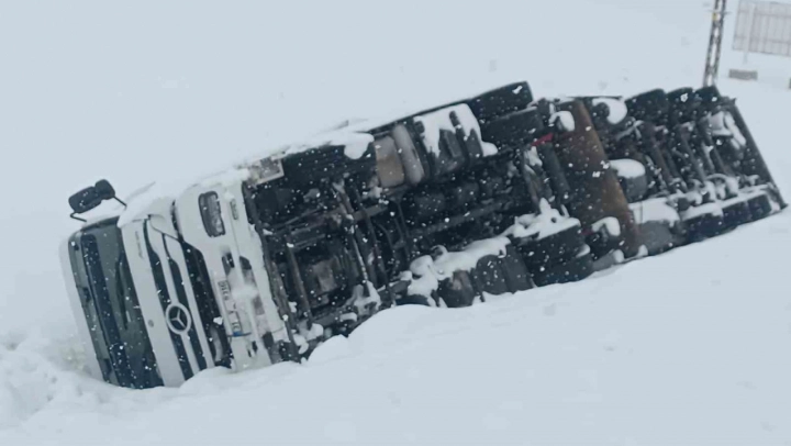 Bitlis'te etkili olan yoğun kar yağışı ve tipi, trafik kazalarını da beraberinde getiriyor. Bitlis-Tatvan karayolunda sabah saatlerinde meydana gelen kazada bir tır yolun kenarına devrildi.