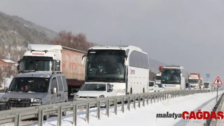 Bolu'da, kar yağışı nedeniyle yaşanan kazalar D-100 kara yolunu kapattı