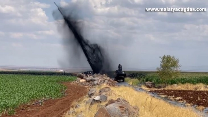 Şanlıurfa'nın Siverek ilçesinden geçen petrol boru hattı delindi. Yer altından metrelerce yüksekliğe petrol fışkırdı.