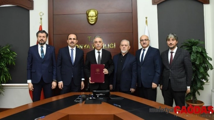 Konya Büyükşehir Belediyesi ve hayırsever Osman Yaren tarafından Bozkır'a 8 derslikli okul kazandırılmasına ilişkin protokol Konya Valisi Cüneyit Orhan Toprak, Büyükşehir Belediye Başkanı Uğur İbrahim Altay ve hayırsever Osman Yaren tarafından imzalandı.