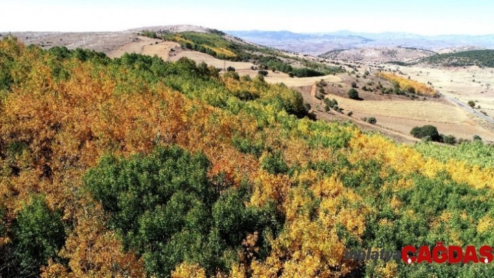 Sivas'ta Sonbahar mevsiminin etkilerini hissettirmesi ile tabiatta pastel renklere büründü. Ağırlıkta Bozkır bitki örtüsüne sahip olan Sivas'ta, parçalar halindeki ormanlarda bulunan ağaç yapraklarının sararması kartpostallık görüntüler ortaya çıkarttı. Sivas'a bağlı Gazi köyünde insan eli ile oluşturun ormanların sergilediği cümbüş havadan da görüntülendi.
