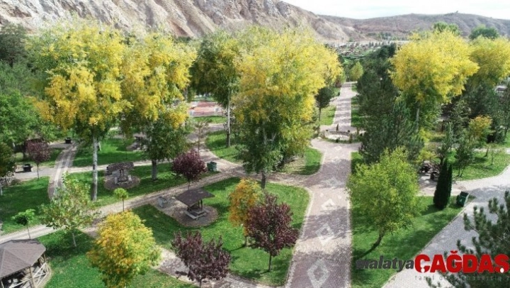 Sivas'ta Paşabahçe Mesire alanında Sonbaharın gelmesiyle birlikte ağaçların sarı renge bürünmesi güzel görüntüler oluşturdu.