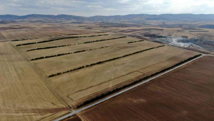Bozkırda, ekinlere siper olsun diye ağaçlarla sed çektiler