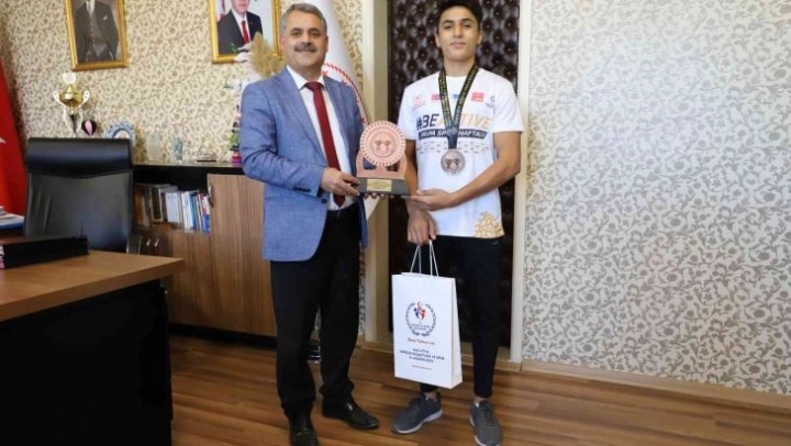Bronz madalya alan sporcuya hediye veren Kayhan, başarılarının devamını diledi. Kayhan, “Tebrikler Çağrı başarılar sürekli seninle olsun” dedi.
