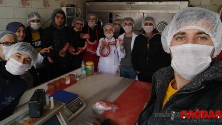 Gıda Teknolojisi Bölümü öğrencileri Et Teknolojisi dersi kapsamında öğretmenleri Gözde Çelikeloğlu eşliğinde ilçe kasabı Ahmet Demirel'e misafir oldular. Yaklaşık üç saat süren uygulamalı anlatımda işletme yetkilisi Ahmet Demirel bilgilerini ve becerilerini öğrencilerle paylaştı ve öğrencilere püf noktalarıyla beraber geleneksel yöntemle sucuk üretimini anlattı.