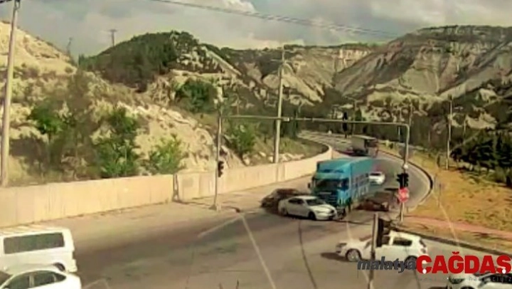 Yayınlanan MOBESE görüntülerinde kırmızı ışıkta bekleyen araçların arkasından hızla gelen sebze yüklü kamyon sürücüsünün virajdan sonra kırmızı ışığı geç fark edip bir anda araçların arasına dalması kayıtlara geçti.