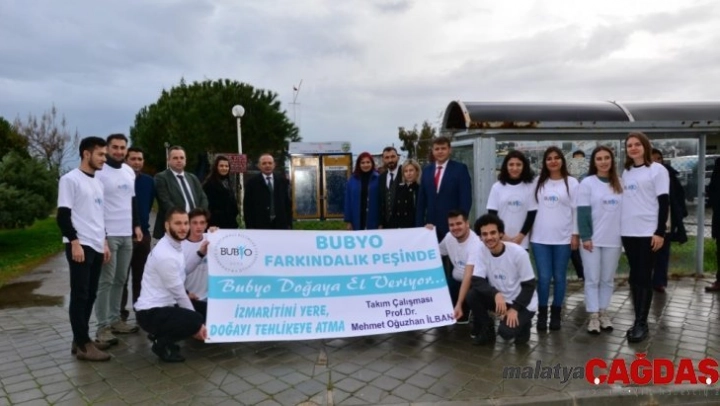 Burhaniye'de, oldukça ilgi çeken, Körfez Bölgesi'nde takdir toplayan ve ulusal basında yer alan projelerin son ayağı ise Burhaniye İskele Mahallesi oldu. Balıkesir Üniversitesi Rektörü Prof. Dr. İlter Kuş'un yoğun programından dolayı katılamadığı ancak eşleri Duygu Tayhani Kuş'un katılım sağladığı etkinliğe, Burhaniye Kaymakamı Hüseyin Öner ve eşi Mine Öner, Burhaniye Meslek Yüksekokulu Müdürü Prof. Dr. Mehmet Oğuzhan İlban ve eşi Öğr. Gör. Nuray İlban, Burhaniye Belediye Başkan Yardımcısı Murat Yazgan ve belediye yöneticileri eşlik etti. Burhaniye ilçesinde, Uygulamalı Bilimler Yüksekokulu (BUBYO) Uluslararası Ticaret Bölümü 3. Sınıf 1. Öğretim öğrencileri, Takım Çalışması dersi kapsamında çevre ve görüntü kirliliğine yol açan sigara izmaritlerini engellemek amacıyla 'BUBYO doğaya el veriyor' sloganı ile projelerini ortaya koydular. Proje de görev alan öğrenciler, '21 Eylül 2019 tarihinde Burhaniye ilçesinde de düzenlenen Dünya Temizlik Gününde toplanan çöplerin çoğunluğu sigara izmaritlerinden oluşmaktaydı. Bizlerde sigara içenlerin izmaritlerini gelişi güzel yerlere atarak doğayı kirletmelerini önlemek amacıyla bu izmarit kutusu projesini gerçekleştirmiş bulunmaktayız. Bu nedenle bu konuda duyarlılık ve farkındalık oluşturmak amacıyla böyle bir projeyi gerçekleştirdik' diye konuştu. Proje, Serap İnal, Ebru Geniş, Beyzanur Akkurt, Beyza Öcal, Ömer Yiğit Beke, İsmail Fatih Kaan Kasap, Faruk Yücedal, Anıl Yılmaz, Furkan Özdemir ve Muhammed Arslan tarafından gerçekleştirildi. Projede görev alan öğrencilere teşekkür eden Prof. Dr. Mehmet Oğuzhan İlban, 'İzmarit toplama kutusu İskele mahallesine yerleştirildi. Vatandaşların düşüncelerini öğrenmek amacıyla, proje kapsamında iki bölümden oluşan izmarit toplama kutusu hazırlandı. İki bölümde hazırlanan gözeneklerin üzerine vatandaşa, sigara en çok hangi organa zarar verir? şeklinde bir anket sorusu yöneltildi. Sigara içenler sigaranın hangi organa daha çok zarar verdiğini oylayarak izmaritlerini seçtikleri bölmelere atacaklar. Böylece sigaranın hangi organa daha çok zarar verdiği görülecek ve sigara izmaritlerinin yere atılması önlenerek İskele mahallesi daha temiz bir görüntüye kavuşacaktır. Gerçekleştirilen projelere Burhaniye Kaymakamlığı, Burhaniye Belediyesi, Burhaniye esnafı, bölge halkı ve birçok kesim destek verdi' dedi.