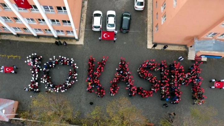 Ardahan Merkez Kazım Karabekir Yatılı Bölge Ortaokulu'nda da 10 Kasım dolayısıyla program düzenlendi. Bir araya gelen çok sayıda öğrenci, 10 Kasım figürü oluşturdu.