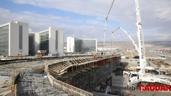 Büyükşehir Belediye Başkanı Dr. Memduh Büyükkılıç, Şehir Hastanesi önünde yapım çalışmaları devam eden katlı kavşağın dördüncü kolunu yerinde inceledi. Olumsuz hava koşullarına rağmen devam eden çalışmaların son durumuna ilişkin bilgiler alan Başkan Memduh Büyükkılıç, iki ay içinde dördüncü kolun tamamlanacağını söyledi. Bölgede ulaşımı rahatlatmak için gece gündüz çalıştıklarını dile getiren Başkan Memduh Büyükkılıç, 'Şehir Hastanesi önünde dördüncü kolun yapılma çalışmalarını mevsim şartlarına rağmen gece demeden gündüz demeden bir an önce bitirmek amacıyla sürdürüyoruz. İki aylık süre içinde dördüncü kolu tamamlayarak ulaşımı rahatlatacağız' dedi.