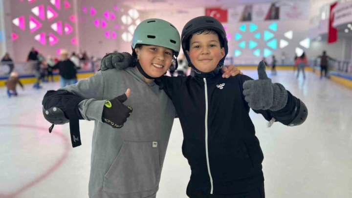 Buz pateni pisti yarıyıl tatilinde çocukların uğrak noktası oldu