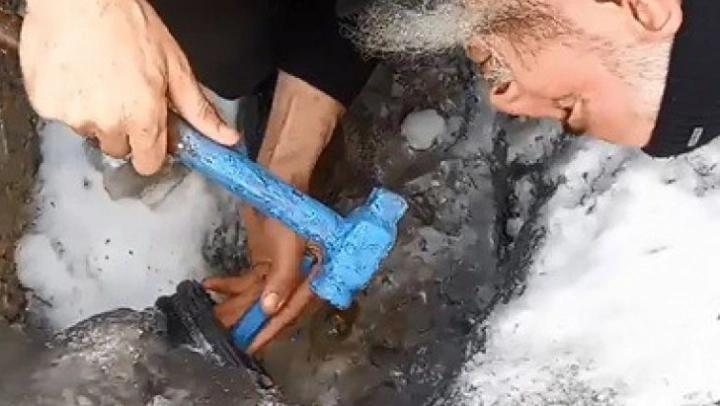 Buzlanan boruda mahsur kalan kediyi böyle kurtardı