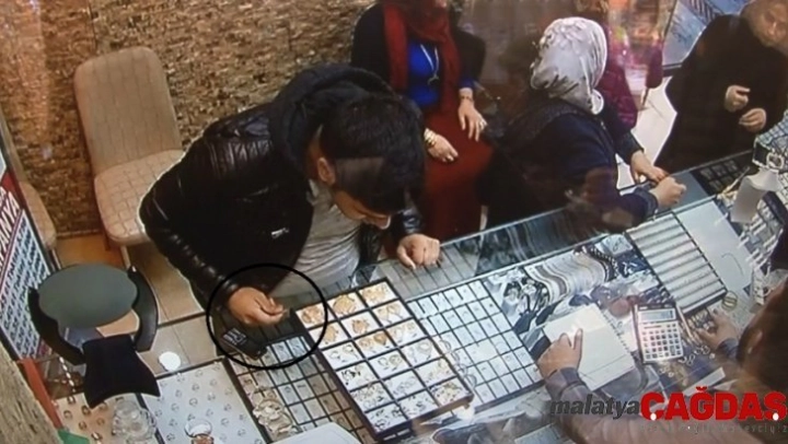 Kuyumcu Mehmet Emin Turan, 'Dün 15.00- 15.30 sıralarıydı, burada birkaç müşteri vardı, onlarla ilgileniyordum. Ağabeyim bir yere kadar gitmişti, tek başımaydım. Geldi içeri 'Kolyelere bakabilir miyim?' dedi. 'Tabii' dedim, bir iki dakika beklerseniz yardımcı olurum. Sonra kolyeleri çıkarttım önüne bakmaya başladı, tabii o sırada hem onla hem de diğer müşterilerle ilgileniyordum. Bir süre baktıktan sonra başka ürünlere bakmak istediğini söyledi. Diğer ürünleri koydum. Tabii o sırada koyduğum tablodan bir tane kolye çalmış. Daha sonra diğer tabloyu koydum önüne. Biraz hareketlerinden şüphelenmiştim zaten, yani giderken de bana iki tane kolye ayırttırıp 20 TL de kapora bıraktı. 'Ben geleceğim ağabey bunları satma' dedi. Akşam üzeri sayım yaparken ürünün eksik olduğunu gördüm. Çaldığını gördük. Kameradan izlerken birkaç kez daha çalmaya çalışmış. Ben ona bakınca bırakmış. Piyasa değeri 2 bin civarı 14 ayar bir üründü. Önce polisi aradık, daha sonra gidip karakola şikayetçi oldum' dedi.
