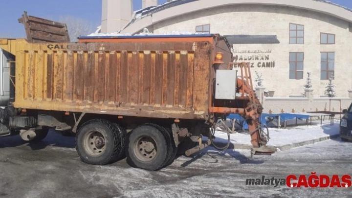 Van'ın Çaldıran Belediye Başkanlığı, yollarda buzlanmaya karşı tuzlama çalışmalarına başladı.