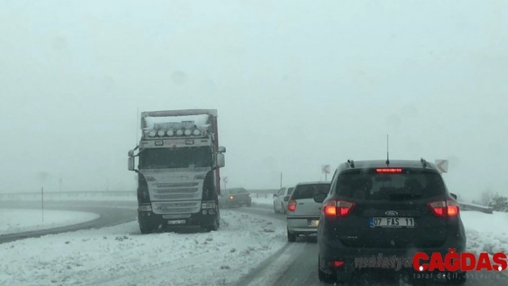 Sivas-Tokat karayolunun Çamlıbel Geçidi'nde etkili olan kar yağışı ulaşımda aksamalara neden oldu.