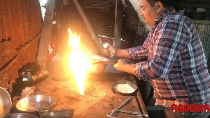 Alüminyum ve çelikten sonra porselenin de mutfaklarda yerini almasıyla bakır eşyalar kullanılmamaya başladığını kaydeden Özman, aile olarak 3 kuşaktır bakır kalaycılığı yaptıklarını söyledi.