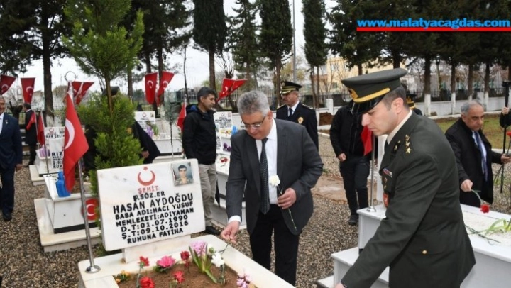 Çelenk sunumunun ardından Vali Aykut Pekmez ve protokol üyeleri, şehitliği ziyaret ederek şehit mezarlarına karanfil bıraktı.