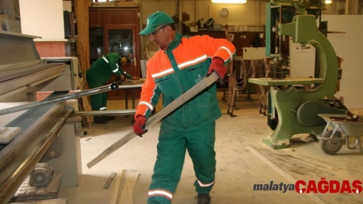 Çankaya Belediyesi yapı sanatlar birimi marangoz, kaynak ve boya atölyeleriyle üretime ve yenilemeye devam ediyor. Belediyenin hasar gören bank, çöp kovası, tabela, elektrik direği gibi tüm kent mobilyalarını yenileme görevini üstlenen birim çalışanları, gün boyu hem bölge denetimi yapıyor hem de zarar gören kent mobilyalarını atölyede tamir ederek yeniden kullanıma sokuyor.