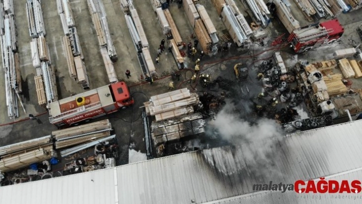 Çatalca'da metal yapı malzemeleri yapan bir fabrikanın depo kısmındaki plastik malzemeler yandı. Yangına müdahale sırasında elinden bir işçi hafif yaralanırken alan havadan drone ile görüntülendi.