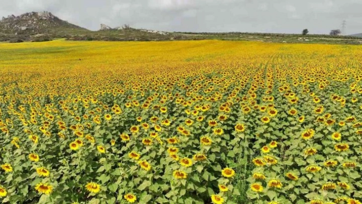 Verimli tarım arazileri üzerinde yer alan Osmaniye'de yıl boyunca onlarca tohum bereketli topraklarla buluşurken, nisan ayında ekilen yağlık ayçiçeği tarlaları da çiçek açtı. Sarı ve yeşil tonların hakim olduğu tarlalarda oluşan masalsı manzaralar havadan görüntülendi. Kartpostallık görüntülerin oluştuğu tarlalarda ortaya çıkan görsel şölen, seyri doyumsuz güzelliğiyle görenleri kendisine hayran bırakıyor.
