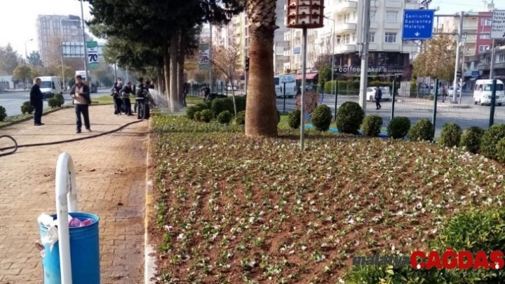 Adıyaman Belediyesi, şehir merkezindeki yeşil alanlarda çiçeklendirme çalışması yaptı.