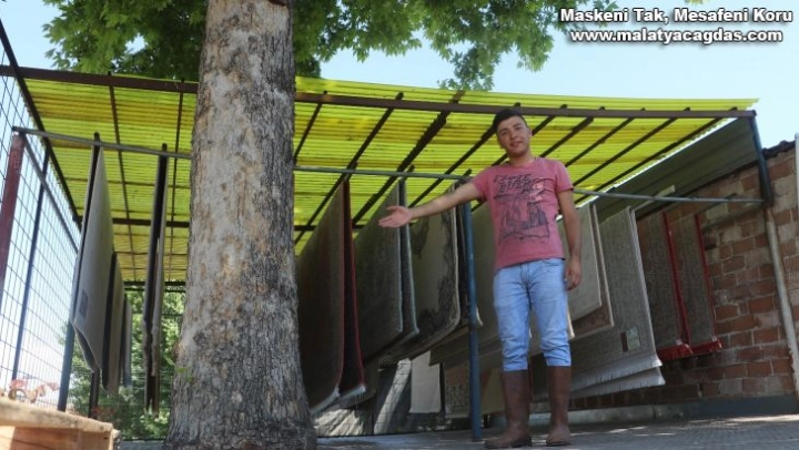 Malatya'da iş yeri sınırları içerisinde bulunan yaklaşık 50 yıllık çınar ağacını kesmeye kıyamayan oto ve halı yıkama işletmesi, çözümü ilginç bir şekilde buldu.