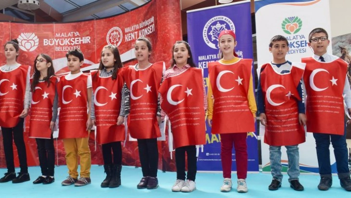 Malatya Büyükşehir Kent Konseyi Çocuk Meclisi ve Malatya Büyükşehir Kültür Sosyal İşler Başkanlığının ortaklaşa düzenlenmiş olduğu 'Vatan Aşkına' konulu program Sanat Merkezi Fuaye alanında gerçekleştirildi.
