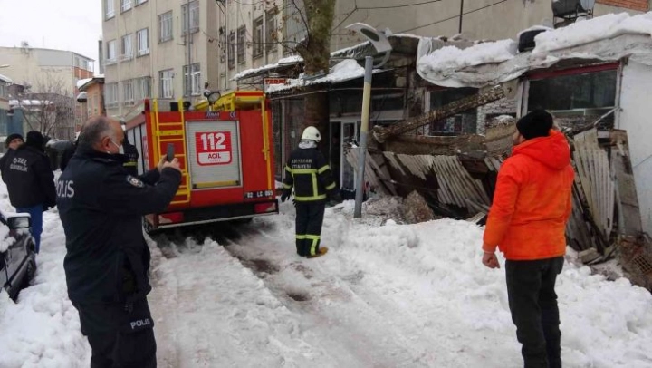 Adıyaman'da, kardan dolayı çöken bir işletmeye ait çatının altında kalan çocuk yaralandı. Kaldırımda yürüyen bir genç ise, saniye farkla çöken çatının altında kalmaktan son anda kurtuldu.