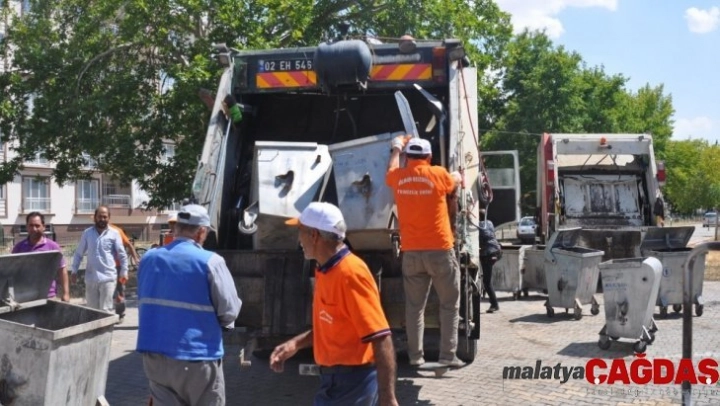 Adıyaman'ın Gölbaşı Belediyesi Temizlik İşleri Müdürlüğü tarafından çevre ve halk sağlığı açısından kentin cadde ve sokaklarında gerçekleştirilen çöp konteynerlerinin dezenfekte çalışmaları sürüyor.