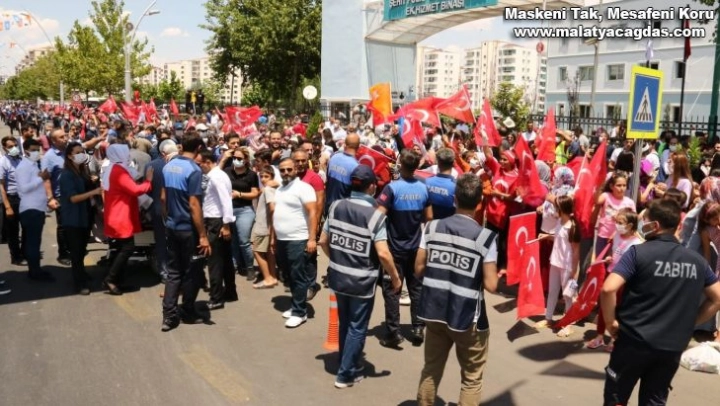Havaalanı yolu üzerinde bulunan Bağlar Belediyesi Şehit Polis Atakan Arslan hizmet binası önünde toplanan binlerce vatandaş, ellerinde Türk bayrakları ve pankartlarla Cumhurbaşkanı Erdoğan'a sevgi gösterilerinde bulundu.