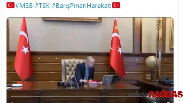 MSB, Milli Savunma Bakanı Hulusi Akar ve TSK Komuta Kademesinin Silahlı Kuvvetler Komuta ve Harekat Merkezi'nde Cumhurbaşkanı Recep Tayyip Erdoğan'dan aldığı direktiflere ilişkin görüntüleri, 'Bakan Akar ve TSK Komuta Kademesi, Silahlı Kuvvetler Komuta ve Harekat Merkezi'nde Cumhurbaşkanımız Recep Tayyip Erdoğan'ın Barış Pınarı Harekatı'na ilişkin direktiflerini aldı.' notu düşerek sosyal medya hesabı Twitter'dan paylaştı.