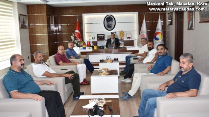 Malatya Gazeteciler Cemiyeti (MGC) Başkanı Vahap Güner ve Yönetim Kurulu Üyeleri, MTB Başkanı Ramazan Özcan'ı ziyaret etti. Ziyarette konuşan Güner, Özcan'ı ziyaret ederek, Malatya ekonomisinin can damarını oluşturan kayısıda yaşanan son gelişmeler hakkında zaman zaman görüş alış verişinde bulunduklarını söyledi.