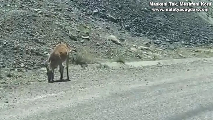Adıyaman'ın Sincik ilçesinde dağ keçileri karayoluna indi.