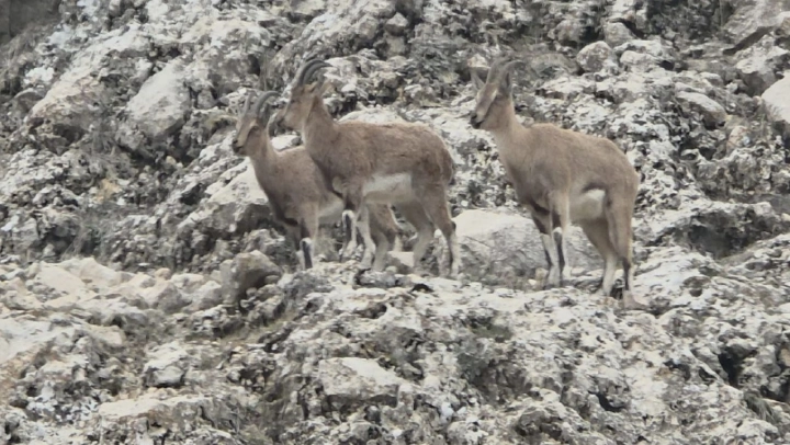 Doğal yaşam alanı olan yüksek kesimlerde beslenen dağ keçilerinin rahat tavırları dikkat çekerken, zaman zaman kayalıklar arasında ilerledikleri görüldü.