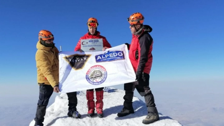 Kahramanmaraş'ta faaliyet gösteren Dağ Aslanları Dağcılık ve Doğa Sporları Kulübünün 5 üyesi Ağrı Dağı tırmanışına 2 bin 200 rakımlı bölgeden başladı. 3 gün sonra dağın zirvesine ulaşan 5 dağcı Kahramanmaraş'ın gastronomi turizmine katkı sunan Alpedo Kervan Pastanelerinin logolarının bulunduğu bayrağı açtı.