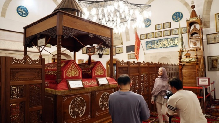 Kentte 4-12 Ekim tarihlerinde düzenlenecek festival için ilçeye gelen TRT programcılarından Pelin Çift ve ekibi, inanç turizminin önemli duraklarından biri olan Somuncu Baba Külliyesi'nin tanıtım çekimlerini gerçekleştirdi.