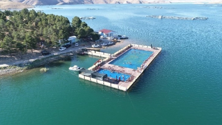 Türkiye'nin yarım adası konumdaki Elazığ'da önemli enerji üretim yerlerinden biri olan Keban Baraj Gölü'nde kurulan yarı olimpik 'Yüzer Havuz' hem boğulmalara karşı güven veriyor hem de yazın sıcağında deniz olmayan kentte yüzmeyi sevenleri ağırlıyor.