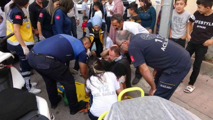Adıyaman'da, bir motosiklet sürücüsü aniden önüne çıkan minibüse çarpmamak için motosikleti devirince 2 kişi yaralandı.