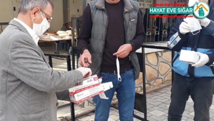 Diyarbakır'ın Dicle İlçe Belediyesi zabıta ekipleri, İçişleri Bakanlığının korona virüs ile mücadele kapsamında yayımladığı genelgeyle semt pazarı girişinde vatandaşlara ücretsiz olarak maske ve eldiven dağıttı.